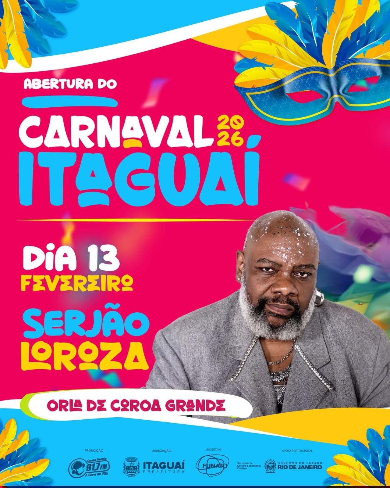 Carnaval Itaguaí abriu o Carnaval 2026 com show de Serjão Loroza em Coroa GrandeLeia Maismatêus Reis21 de fevereiro de 2026Carnaval