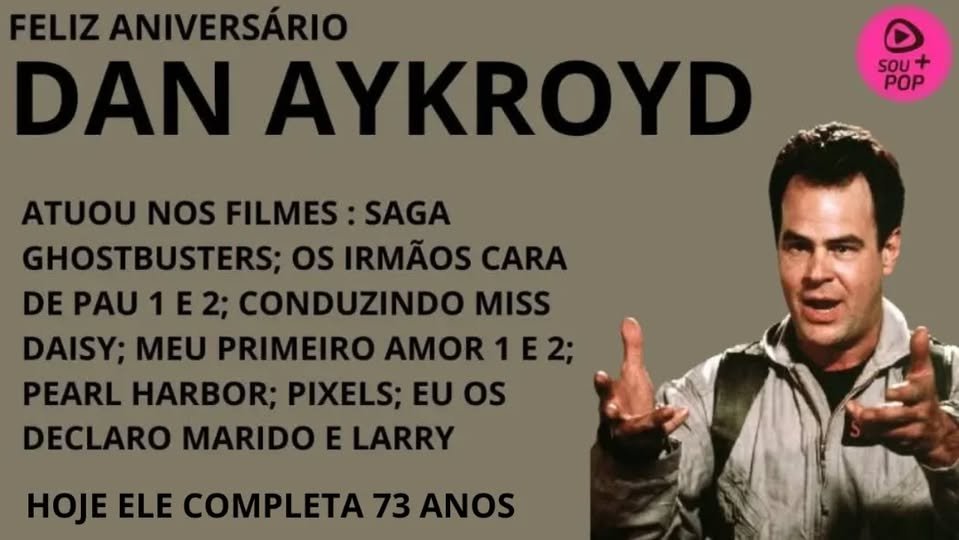 Dan Aykroyd atuou na Saga Ghostbusters; Conduzindo Miss Daisy, Meu Primeiro Amor 1 e 2; Os Irmãos Cara de Pau 1 e 2; Pearl Harbor; Matador em Conflito: Pixels; Eu os Declaro Marido e Larry, Lance Livre; O Sargento Trapalhão; Evolução; Um Natal Muito Muito Louco; Os Candidatos; Como se Fosse a Primeira Vez; O Julgamento do Diabo; A Maldição da Aranha; O Escorpião de Jade; O Otário (2000); Zé Colmeia – O Filme; Chaplin; Meus Queridos Presidentes: Mong e Lóide: O Anjo da Guarda; Gasparzinho – O Fantasminha Camarada; Nada Além de Problemas; Trocando as Bolas; 1941 – Uma Guerra Muito Louca; No Limite da Realidade; Indiana Jones e o Templo da Perdição; Um Romance Muito Perigoso; Clube dos Pilantras 2; Quebra de Sigilo; Tammy : Fora de Controle