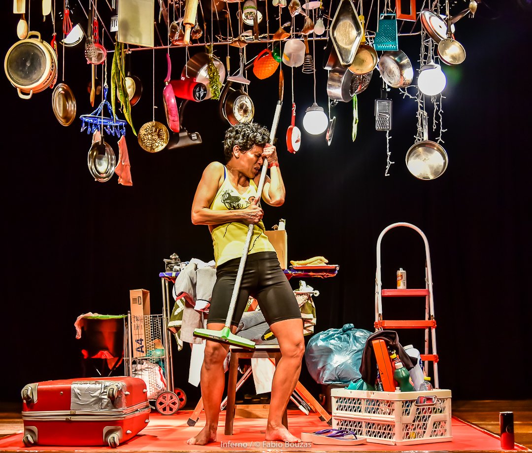 Escrito pelos dramaturgos Rodrigo de Roure e Luiz Felipe Andrade e dirigido por Fábio Espírito Santo, Inferno transforma o cotidiano em palco de resistência. O espaço cênico reduzido, inspirado no “quartinho de empregada”, simboliza a opressão histórica enfrentada por tantas mulheres e se torna o cenário onde Vânia converte exclusão e invisibilidade em força e rebeldia.