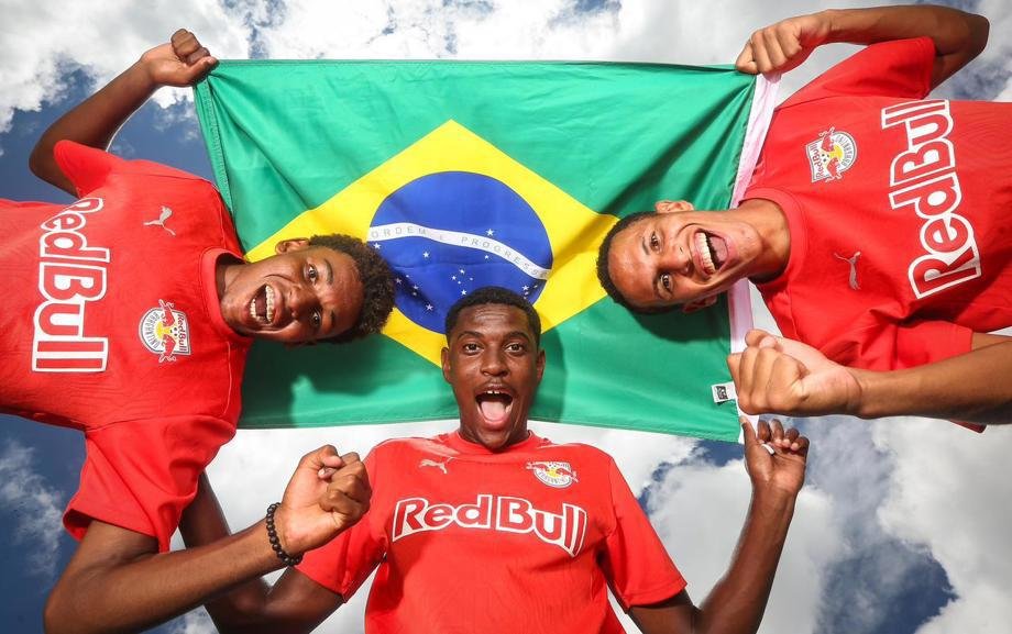 Na ordem, da esquerda para a direita: Manu Nunes, Talles Beni e Lucas Alves, convocados pela primeira vez para a Seleção Brasileira Sub-17 (Foto: Ari Ferreira/Red Bull Bragantino)
