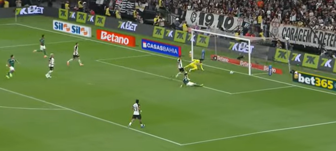 No fim do jogo, em rebote, o argentino Flaco Lopez pega rebote da defesa de Hugo Souza e faz o gol do Palmeiras de carrinho.
