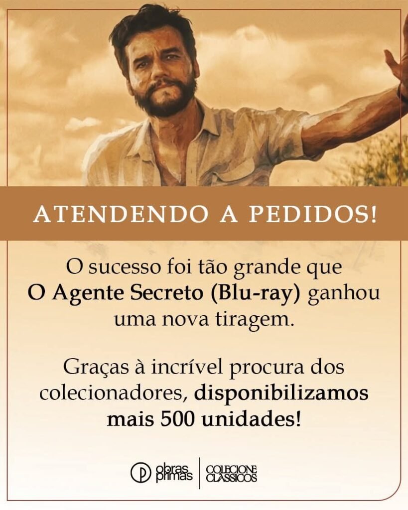 Após as pré-vendas de 1000 unidades esgotarem, a empresa Obras-Primas do Cinema, anunciou em suas redes sociais,mais 500 cópias do Blu-ray do premiado filme ” O Agente Secreto ” do diretor Kleber Mendonça Filho.