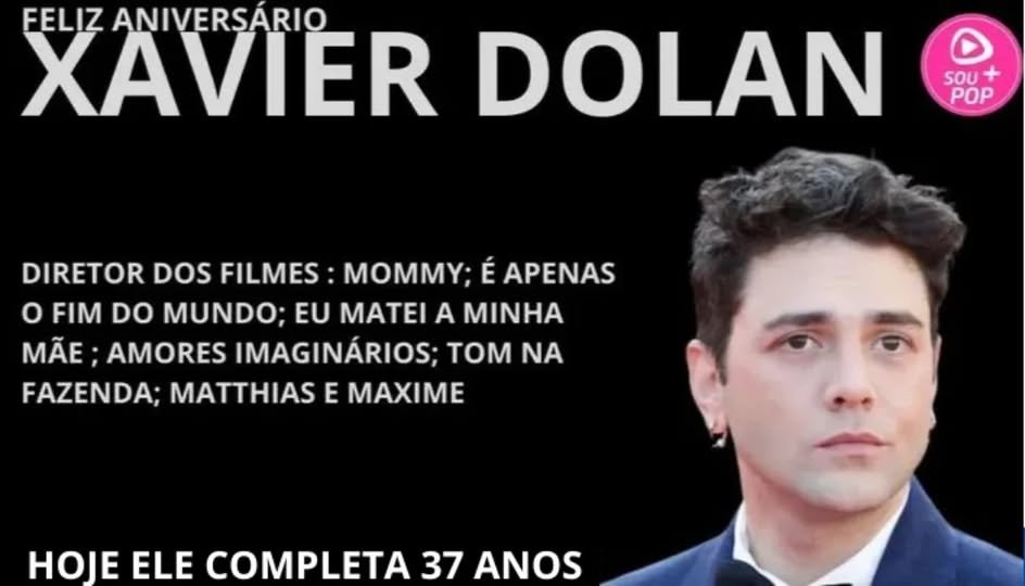 Xavier Dolan Diretor dos filmes : Mommy; É Apenas o Fim do Mundo; Eu Matei a Minha Mãe ; Amores Imaginários; Tom na Fazenda; Matthias e Maxime; Laurence Anyways; etc