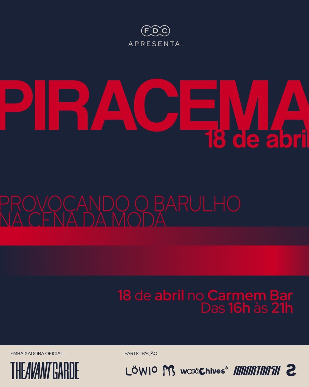 Piracema chega à sua terceira edição no próximo dia 18 de abril, a partir das 16h, na Rua Silva Pinto, 429, no Bom Retiro, em São Paulo. O encontro integra o projeto Fora do Cabide (FDC) e reúne marcas emergentes em formato de pop-ups, com proposta de conexão entre criadores independentes e o público interessado em moda, em paralelo à Rio Fashion Week.