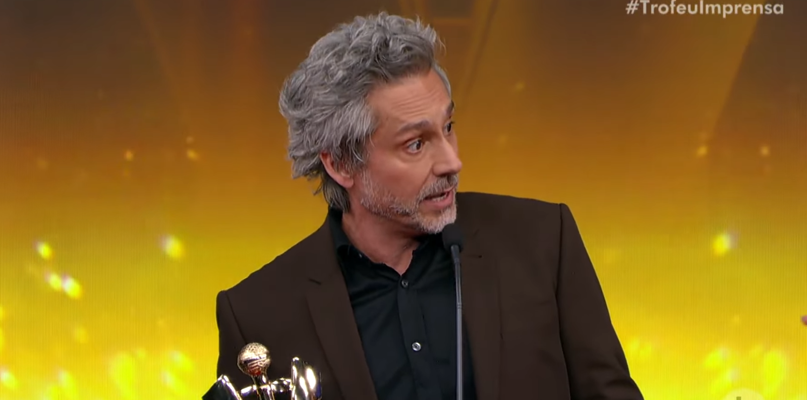 O ator Global compareceu a premiação em comemoração aos 75 anos da tv Brasileira para receber pela sua indicação que foi feita em 2014 pelo seu papel como protagonista na novela império.